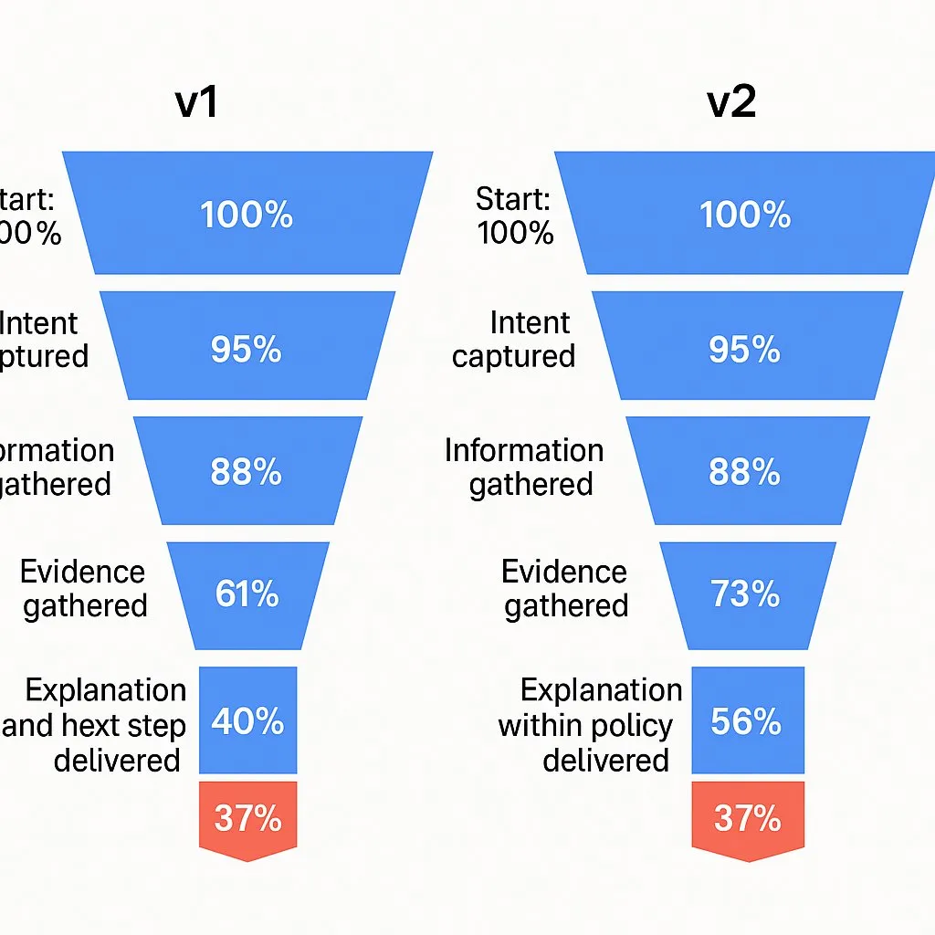 Milestones made the pattern obvious. Authentication passed 95 percent. Intent capture passed 88 percent. Evidence gathering dropped hard. Remedy selection dropped harder. Tags pointed at bad_params and policy_violation during the refund step. One malformed amount field when taxes were present. Fixing the argument builder and adding a strict schema check bumped success to 58 percent. Latency ticked up a hair. The funnel confirmed the leak was sealed.
