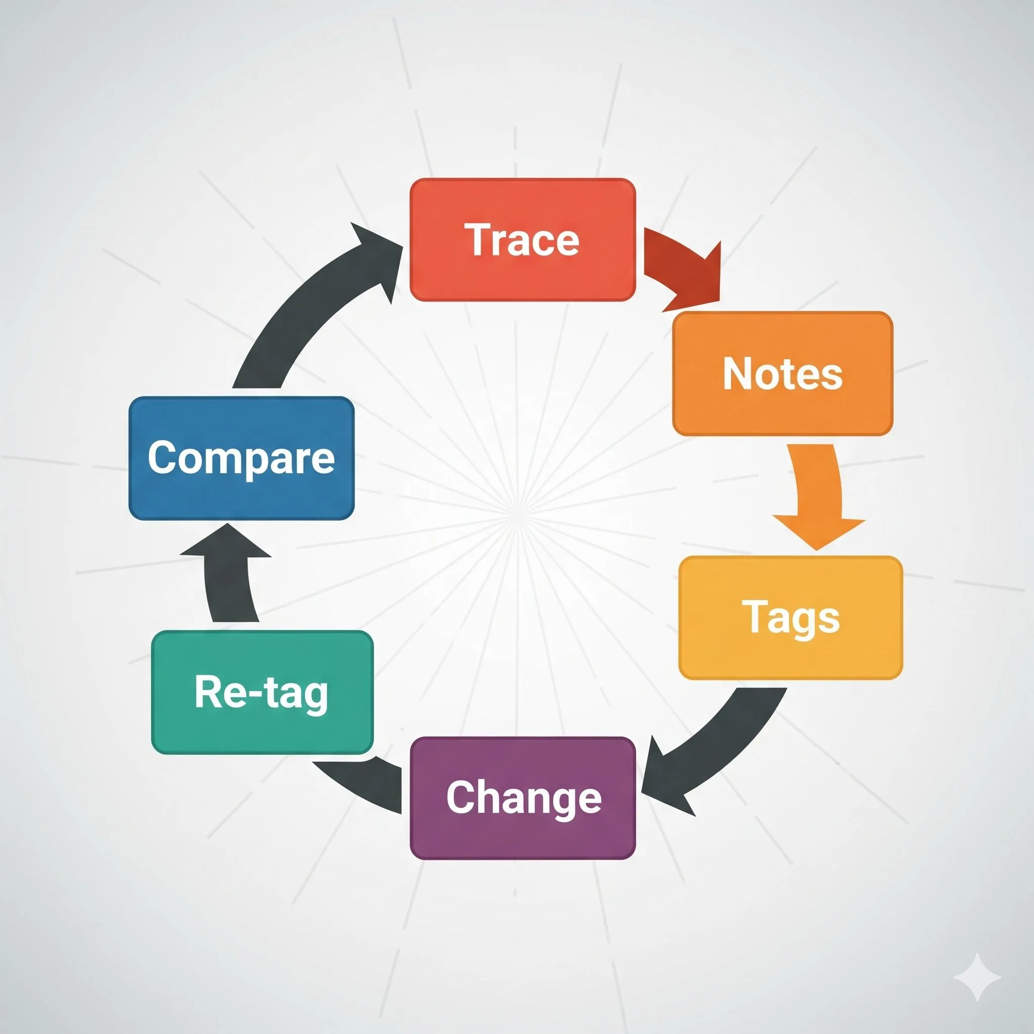 - Turn notes into tags. Name the patterns. Keep the names crisp: