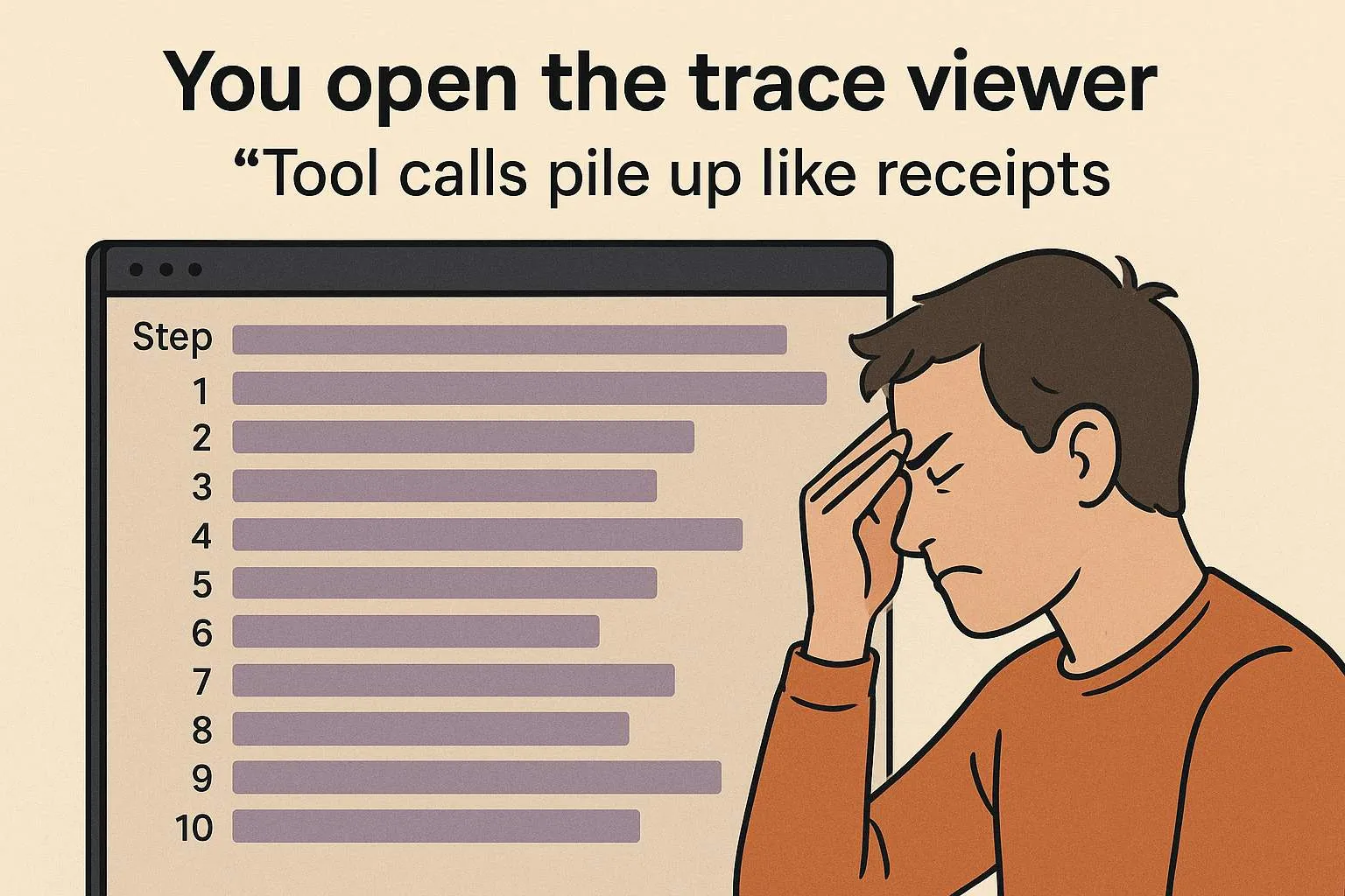 You open the trace viewer. The scroll bar turns into a speck. Tool calls pile up like receipts. Somewhere in there the agent did three smart things, one bad thing, and then tried to fix it with confidence. You feel that pinch behind your eyes.